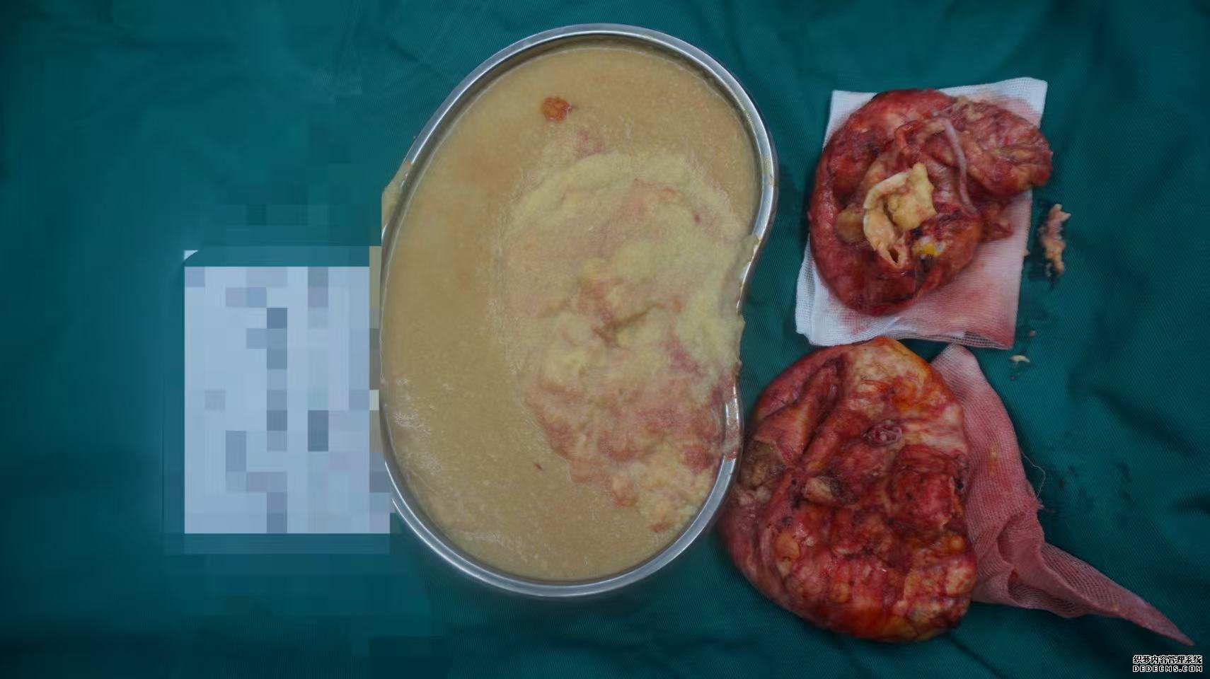 最终,她选择了我们医院,找到了在奥美定取出领域经验丰富的齐云香医生。第一次面诊,齐医生便耐心地为她分析了情况。通过精密的影像检查,发现她体内的奥美定早已不是当初注射时的液态,而是像碎豆腐一样,与自身的腺体和肌肉组织交织在一起,部分已经发生了侵蚀。